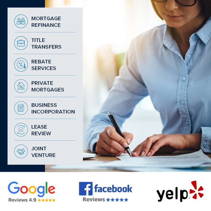 Most of the time, clients will find themselves hiring a real estate lawyer to guide them through the labyrinth of procedures involved in mortgage refinancing. While refinance transaction sounds quite simple, it often is not. We assist clients to pay out their credit debts, consumer proposals & variety of liens that are affecting their title. Lenders want to ensure that the lawyer who you picked can and will protect the lenders interest as well as yours. In some cases, the bank may offer a client an option to refinance through their internal legal department. While this may sound appealing, due to the volume of transactions by the bank, your file is not a priority as it would be with us. We will close your refinance transaction in a timely manner while ensuring that all your needs have been met.